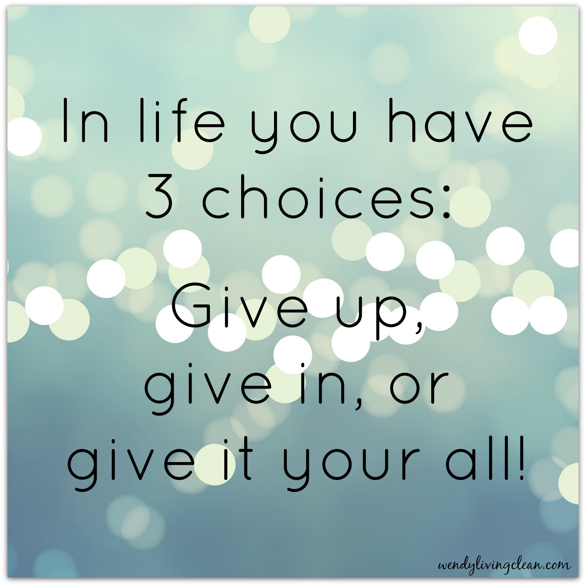 This is true of pretty much everything in life. There are times you just want to give up. The road ahead or the task in front of you looks too daunting. You can do one of 3 things- give up, give in or give it your all!